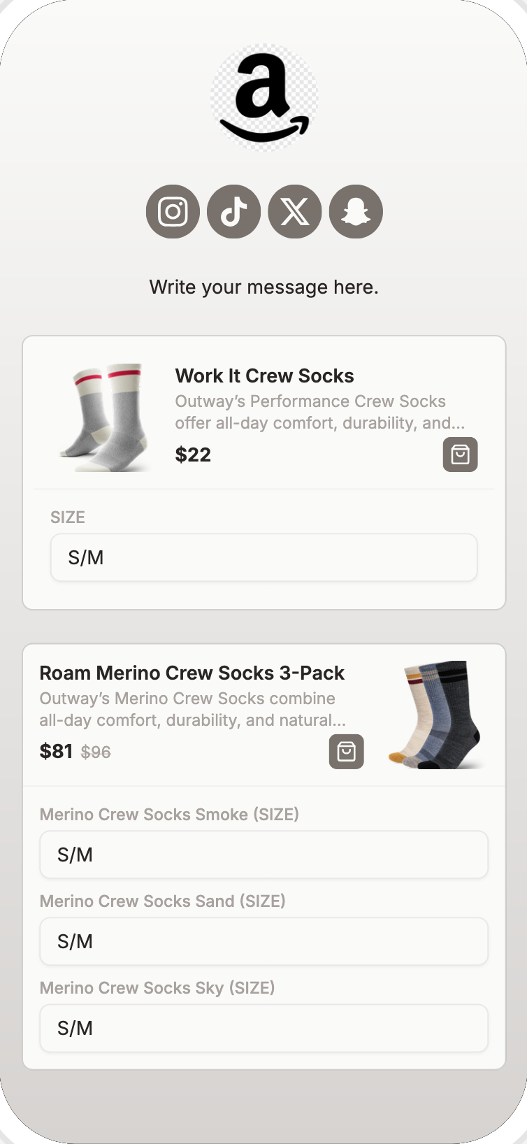 These aren't generic link buttons. They're ecommerce tools built into your bio page.